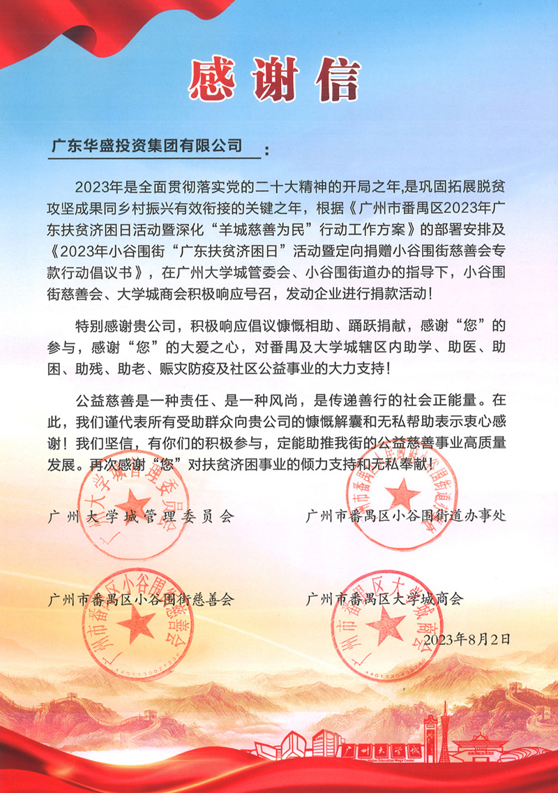为积极响应广州市番禺区小谷围街“广东扶贫济困日”活动暨定向捐赠小谷围街慈善会专款行动的倡议,华体会官方网页版集团一如既往支持公益,特向小谷围街慈善会捐款善款数万元,持续向社会传递关爱,诠释责任与担当。