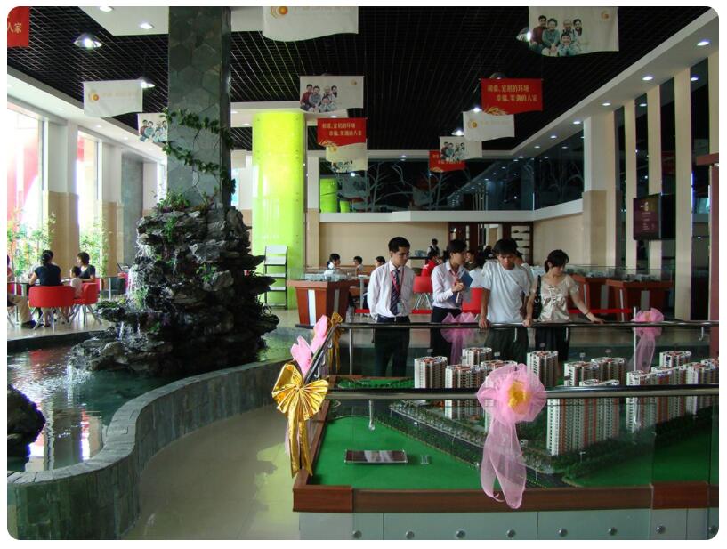 开盘当日,前期成功预约的多位客户蜂拥而至,加上慕名而来的各位购房意向者,挤满了售楼中心。售楼中心的楼盘模型、咨询台、领取资料处周围都围满了人,场面非常壮观。每张洽谈桌上都放有户型资料,置业计划书,销售人员在客户一旁作详细的介绍,为客户量身选房、计算价格。吧台旁边还摆放有各式的点心蛋糕和水果等供客人享用。