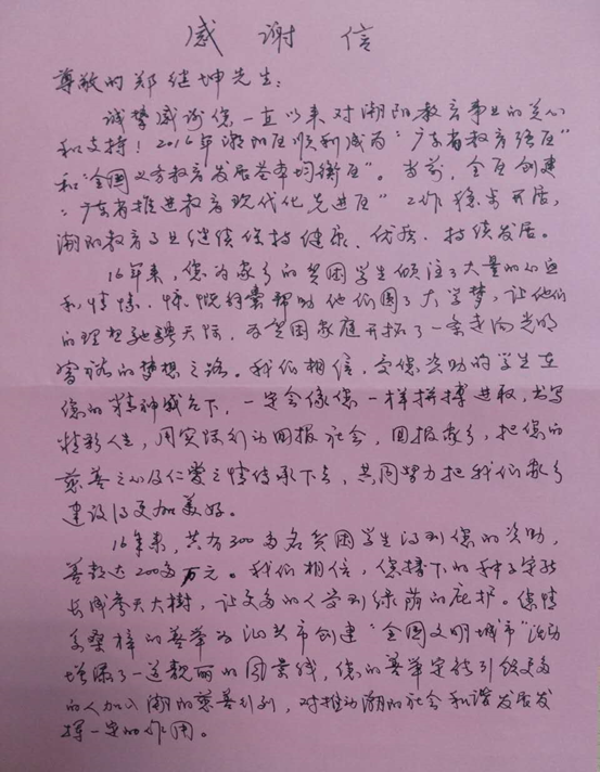 16年来,华体会官方网页版董事长郑继坤先生,一直支持家乡教育事业,为家乡的贫困学生倾注了大量心血和情愫,帮助他们圆大学梦,让他们的理想驰骋天际,为贫困家庭开拓了一条走向梦想的希望之路。近日,汕头市潮阳区教育局、潮阳区教育基金会及潮阳区教育局关工委发来感谢信。